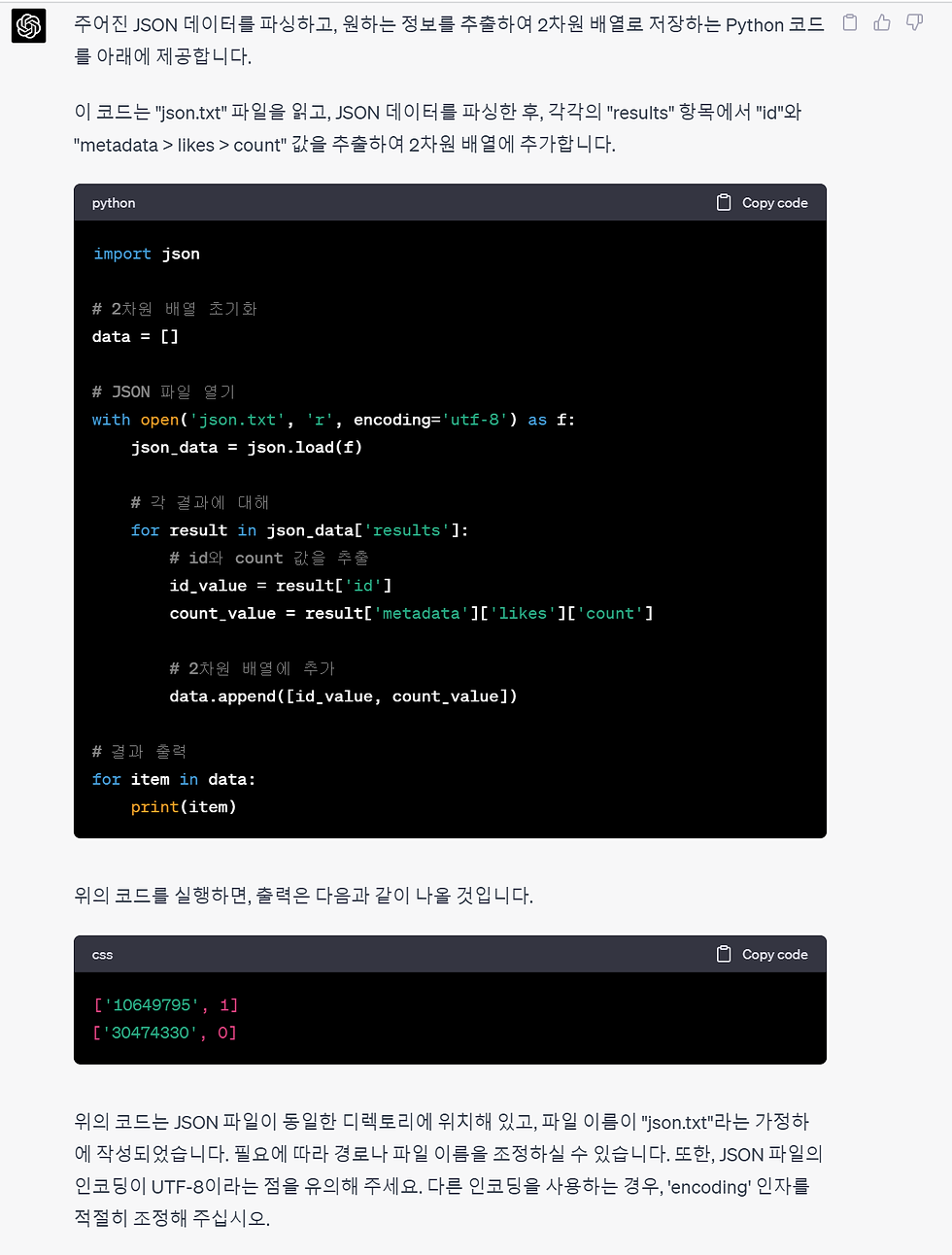이때 ChatGPT 에게 Python 코드를 작성해 달라고 할 수 있습니다.