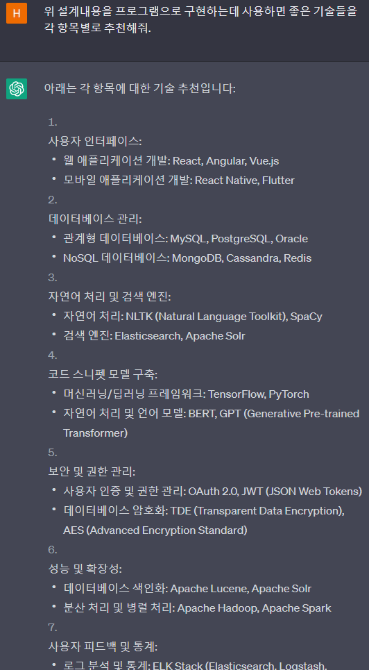 위 설계내용을 프로그램으로 구현하는데 사용하면 좋은 기술들을 각 항목별로 추천해줘.